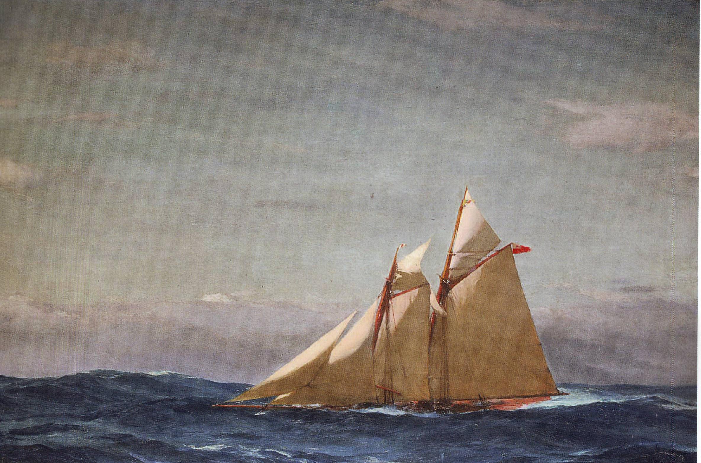 609k | Oil on board painting of the racing yacht America, by John Fraser, circa 1890-1920, National Maritime Museum, London (BHC3192). From "Ship: A History in Art and Photography" Edited by Andrew Lambert. |