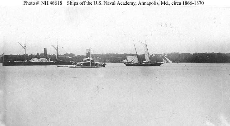 119k | America at anchor off the US Naval Academy, Annapolis, MD. around 1870. US Navy photo from the Martin Holbrook Collection, US Naval History and Heritage Command. Photo and text from "Warships of The American Civil War Navies" by Paul H. Silverstone. | Robert Hurst | |