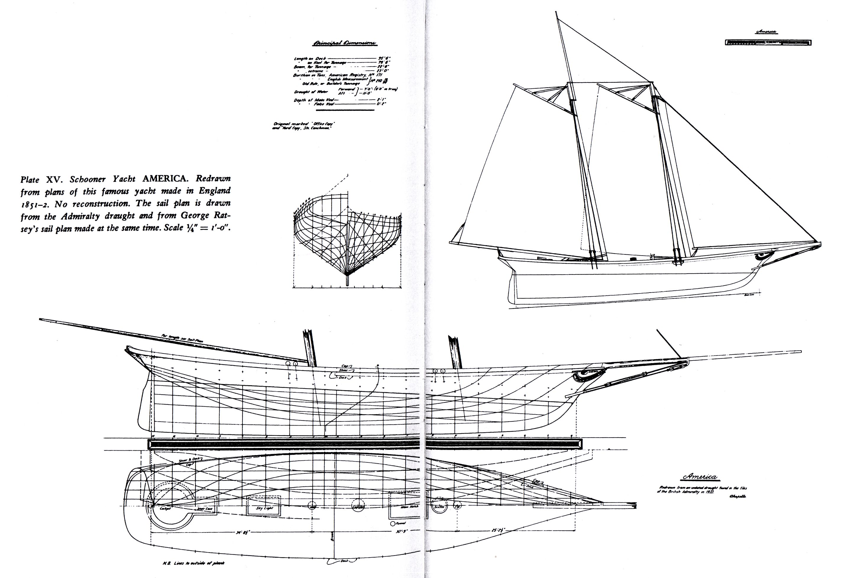 from the Admiralty draught and from George Ratsey's sail plan made at the same time. This undated draught was found in the files of the British Admiralty by Howard I.