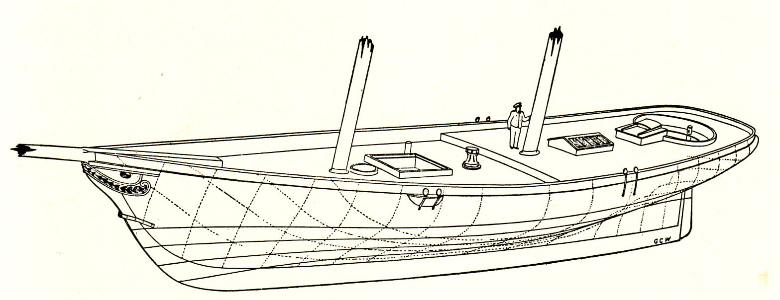 115k | A perspective view of the yacht America drawn in pen and ink by Charles C. Wales.
