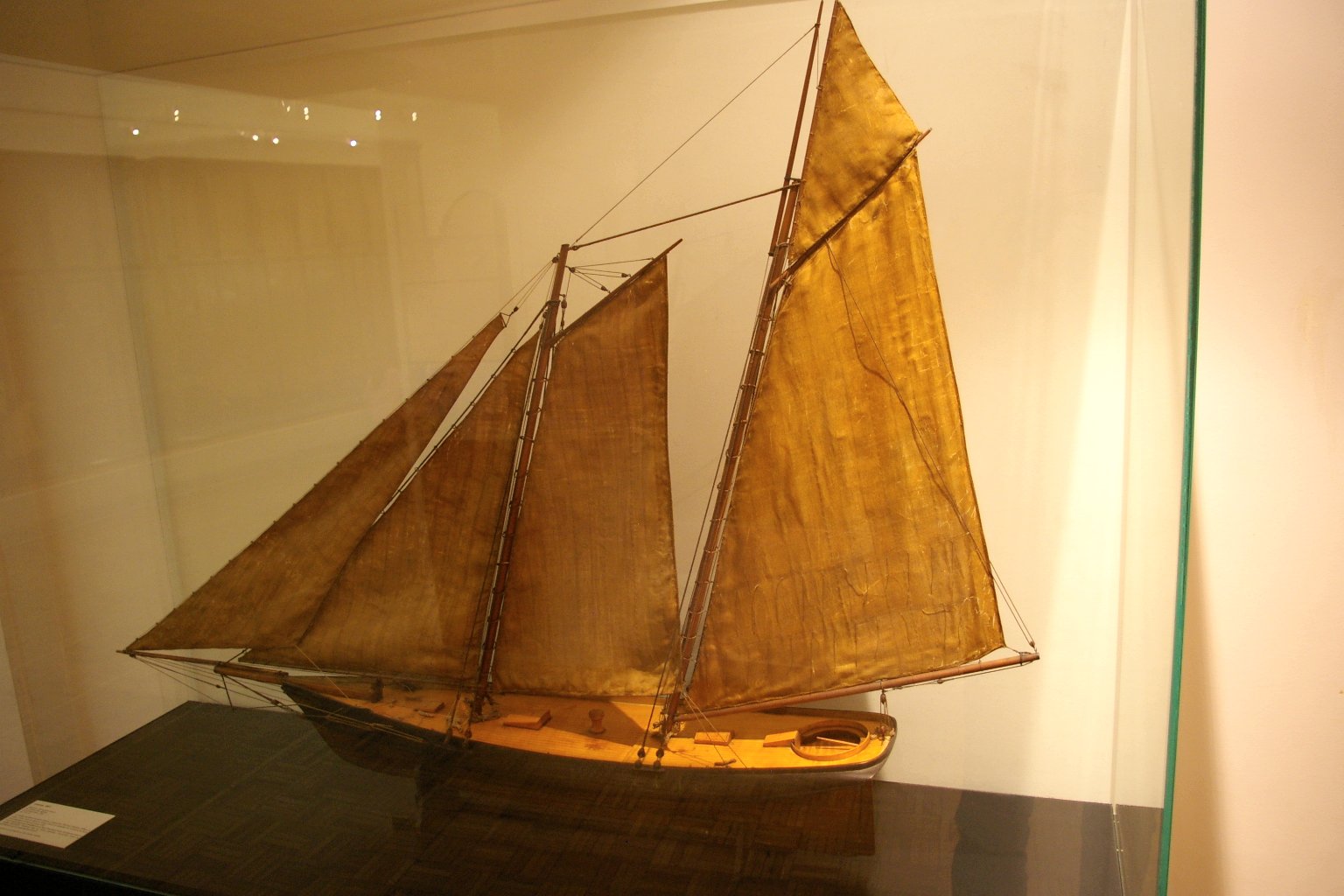 By 1887, the rake in her masts was reduced, all her spars were lengthened, she featured a lead keel and carried two extra headsails and a fore gaff topsail. An