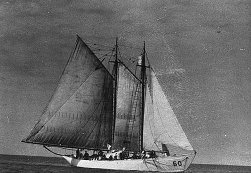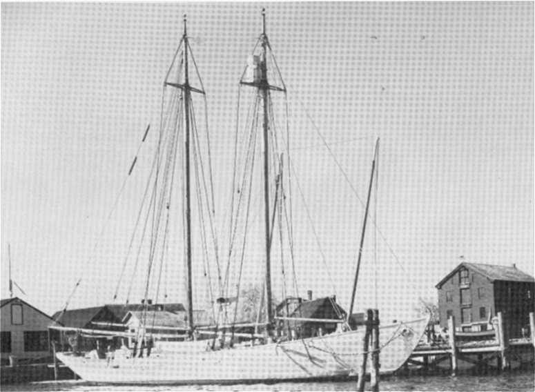 Schooner Bowdoin moored at Mystic Seaport, CT. circa 1959-68. Photo courtesy of the Marine Historical Association |