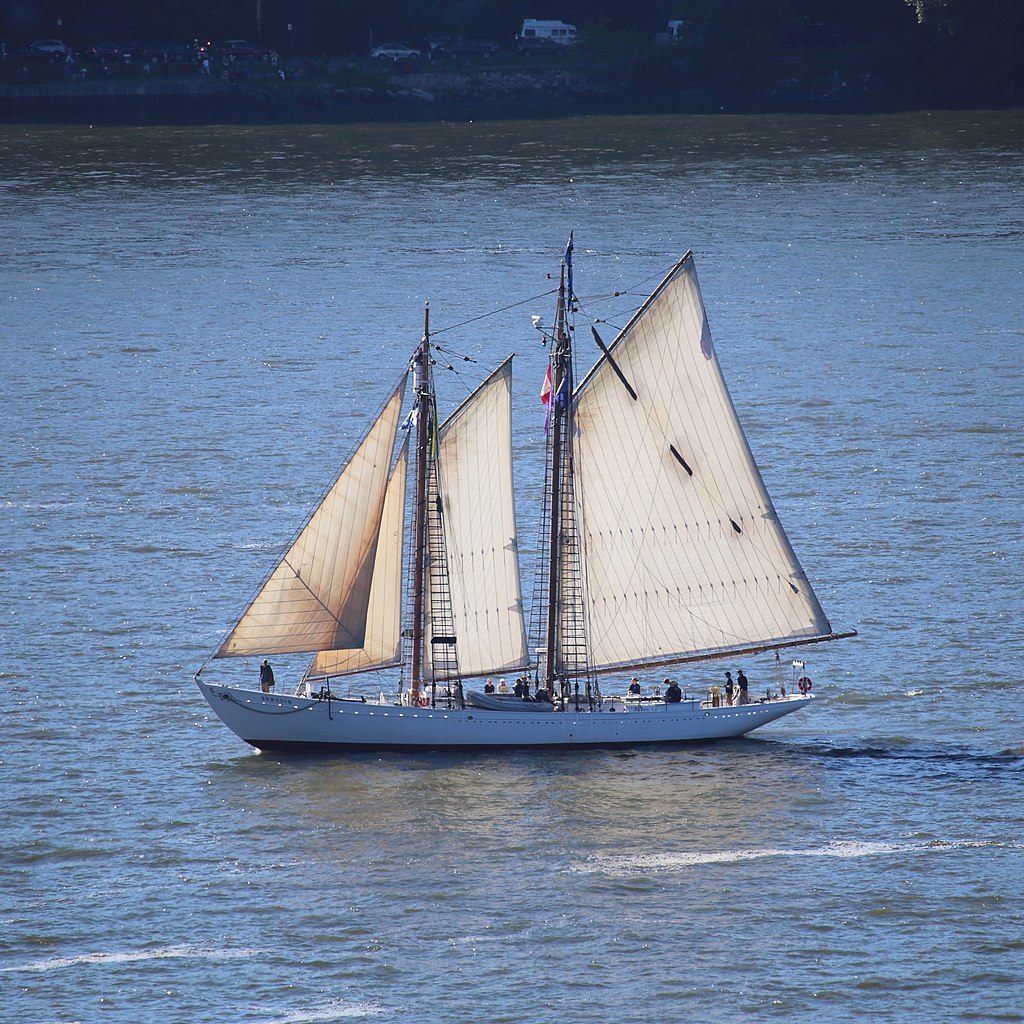 Schooner Bowdoin underway off Quebec City, Quebec, Canada, 23 July 2017.
