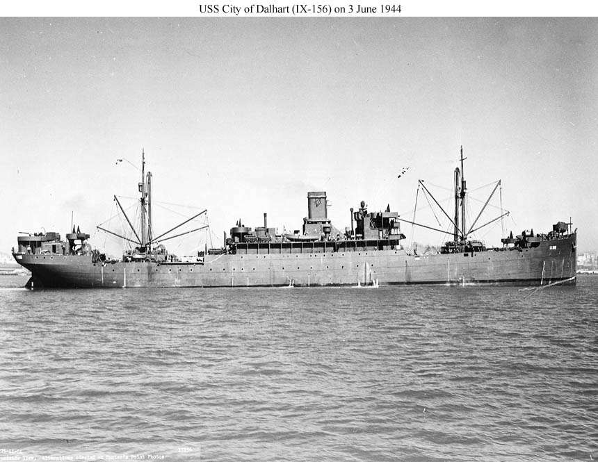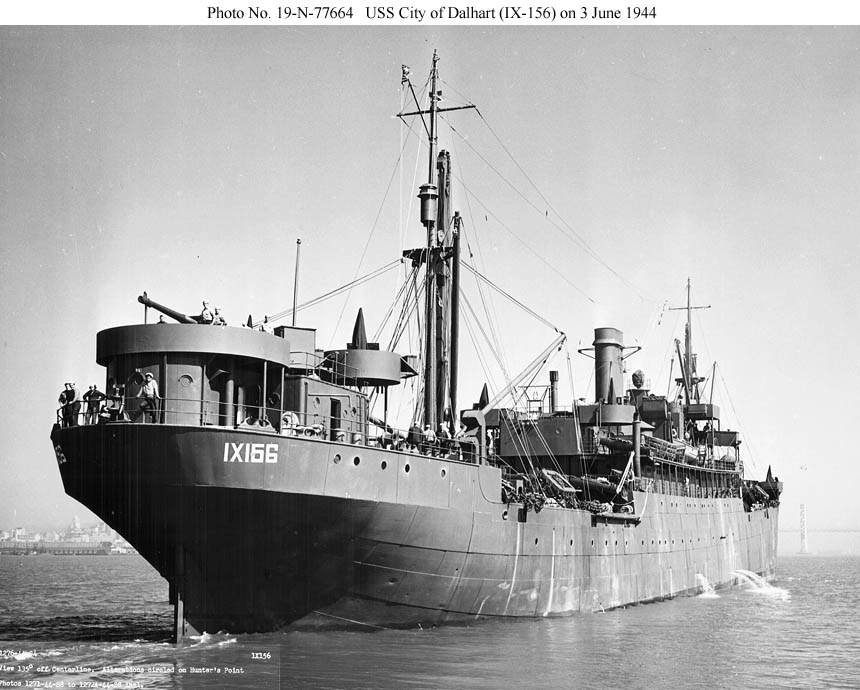 USS City of Dalhart (IX-156) near the US Naval Drydocks, Hunters Point, San Francisco, CA., 3 June 1944.