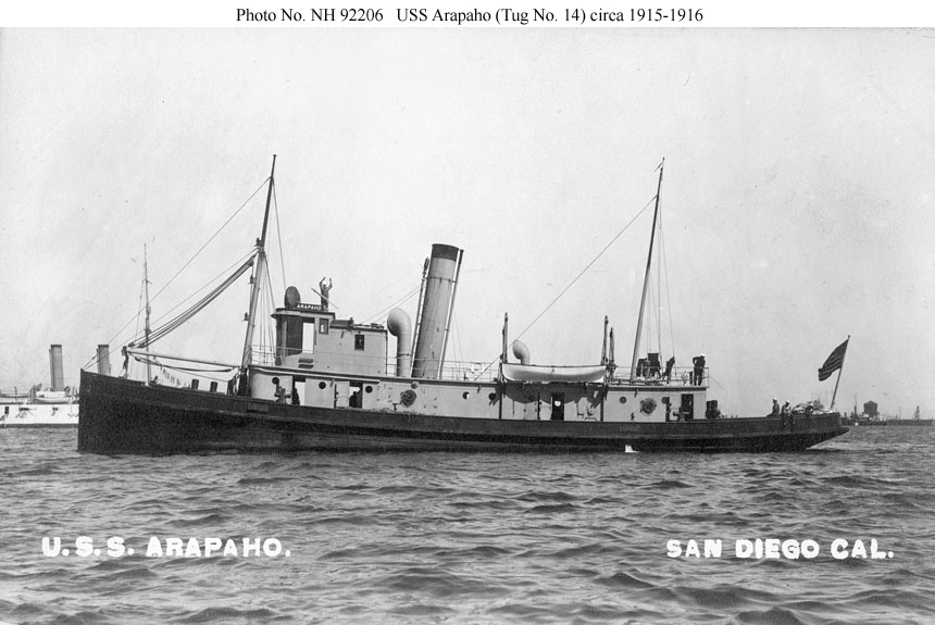 120k | Arapaho (Fleet Tug # 14) off San Diego, CA., circa 1915-1916. Note