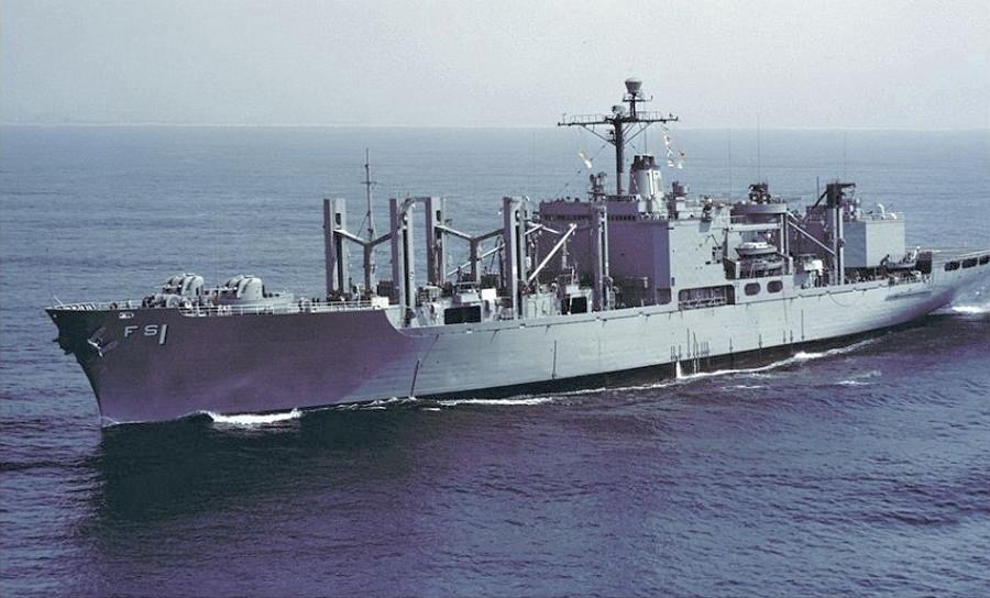 167k | Fast Combat Support Ship USS Sacramento (AOE-1) refuels USS Mars (AFS-1)