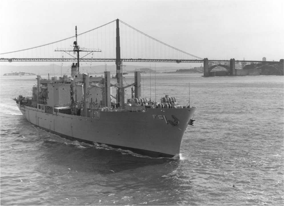 99k | USS Mars (AFS-1) passing under the Golden Gate Bridge as she enters San Francisco Bay, date unknown. | Richard Miller BMCS USNR Ret. | |