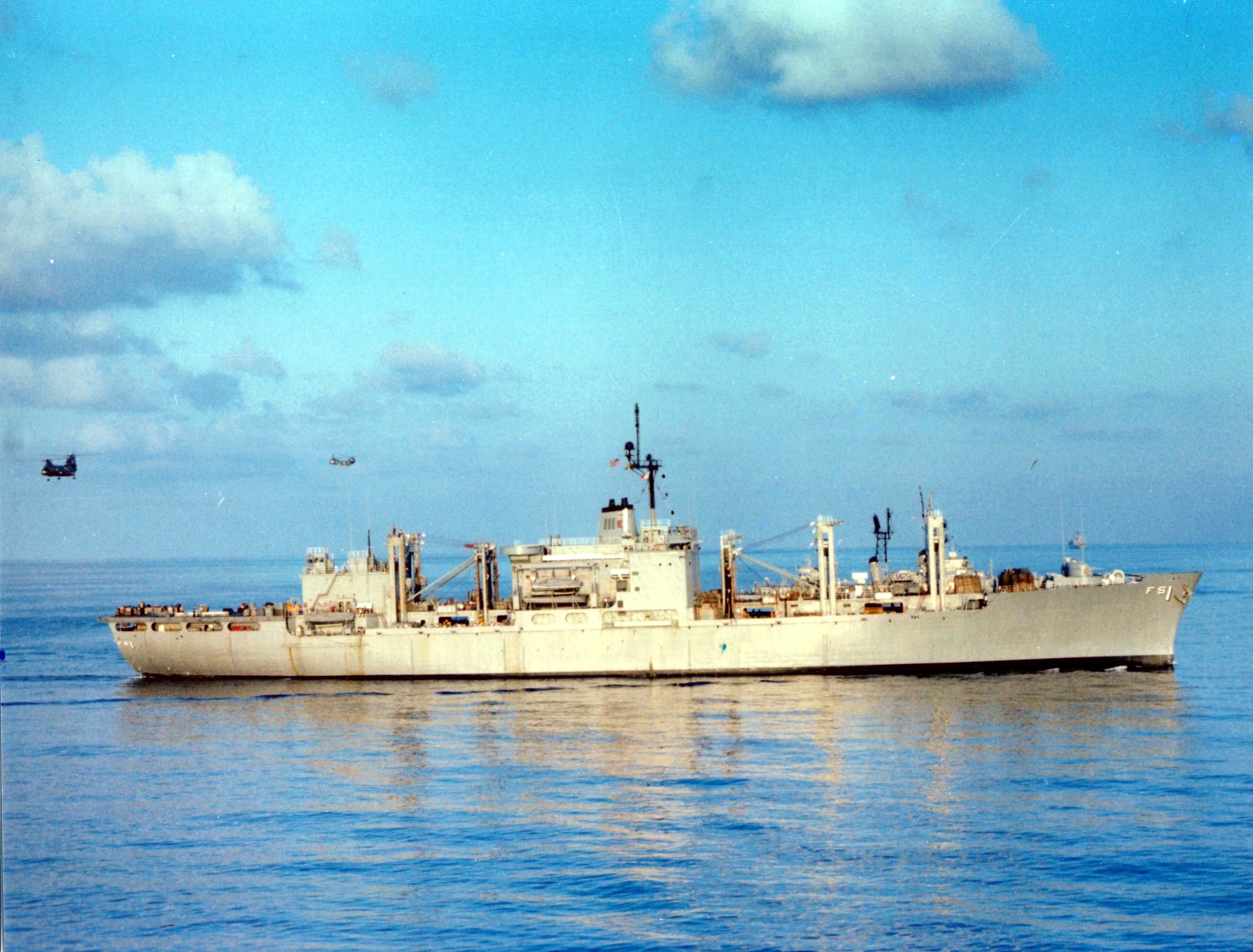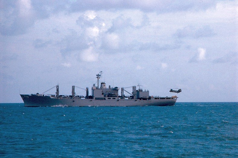91k | USS Mars (AFS-1) conducting a VERTREP (vertical replenishment) at sea in WESTPAC, circa 1966. | Richard Miller BMCS USNR Ret. | |