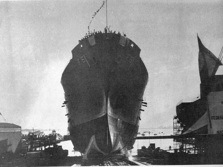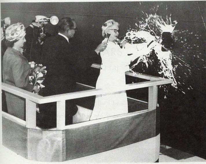 164k | Mars (AFS-1) christening and launching, 15 June 1963, at National Steel and Shipbuilding Co., San Diego, CA. (1) Ready for launching on the builders ways (2) Christening - Ship's sponsor, Mrs. Clyde Doyle, widow of Representative Doyle of California, breaks the traditional bottle of Champagne across the ship's bow (3) Launching - Mars slides down the builders ways into San Diego Bay US Navy photos from Mars Decommissioning Program |