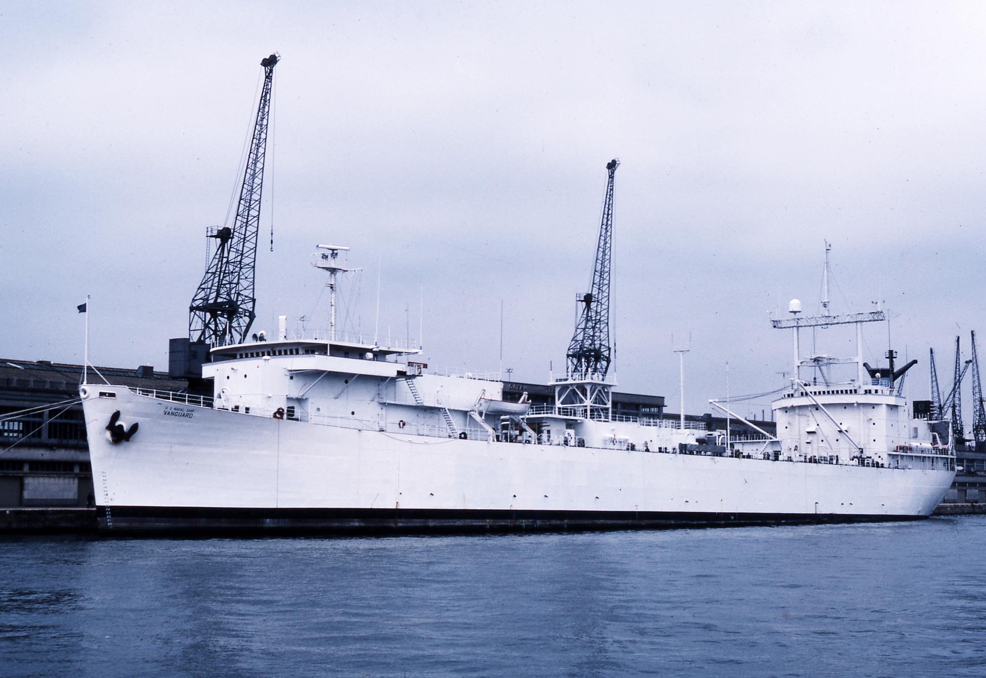 171k | USNS Vanguard (T-AGM-19) moored pierside at San Diego, CA., circa 1966.