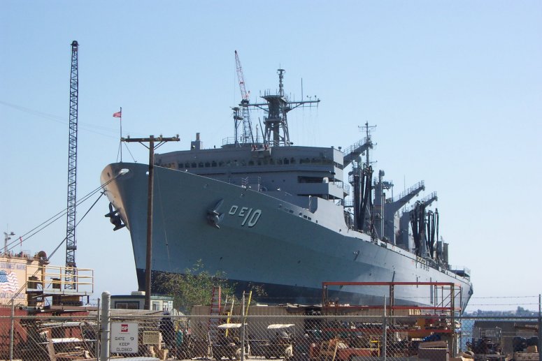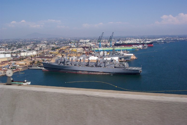 69k | USS Bridge (AOE-10) moored pierside at Southwest Marine Inc., Shipyard, San Diego, CA., 2004 | Photo by Richard Miller BMCS USNR Ret. | |