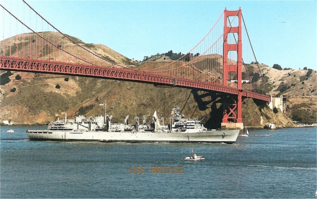170k | USS Bridge (AOE-10) passing under the Golden Gate Bridge as she enters San Francisco, Bay, circa 1998. US Navy photo |