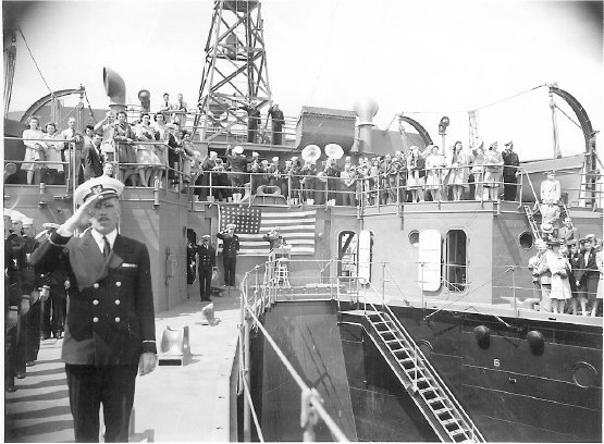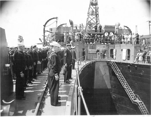65k | USS ARD-8 commissioning day ceremonies, at Pacific Bridge Co., Alameda, CA., saluting the colors. | Susan Bloom for her uncle Raymond Rucker USS ARD-8. | |