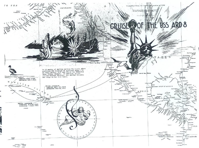 127k | Map of USS ARD-8's journey during the war in the Pacific. | Susan Bloom for her uncle Raymond Rucker USS ARD-8. | |