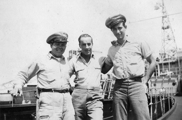 172k | Three of USS ARD-8's Chief Petty Officers, date and location unknown. | Photo by Clayton E. Hiscock PTR3C USS ARD-8 | |