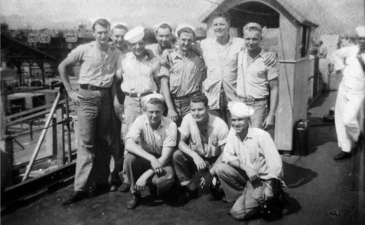170k | Small group of USS ARD-8's enlisted crew, date and location unknown. | Photo by Clayton E. Hiscock PTR3C USS ARD-8 | |