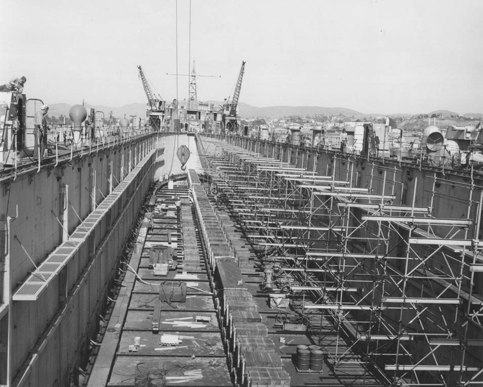 116k | USS ARD-10 receiving a new paint job at Mare Island Naval Shipyard, Vallejo, CA, in a clipping from the 13 March 1962 edition of the shipyard newspaper "Grapevine." ARD-10 at this time was part of the Pacific Reserve Fleet. US Navy photo from the San Francisco NARA, Mare Island Navy Yard Ship Files. |