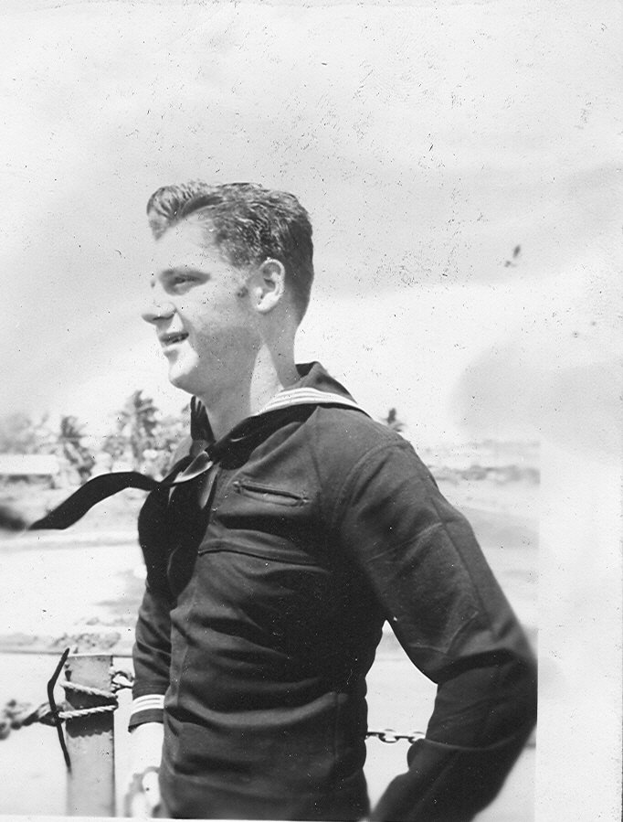61k | USS ARD-23 crew members; Bob Edens, Joe Kutzko and Bill Piazza, at Apra harbor, Guam in 1946. | Bill Piazza USS ARD-23 | |