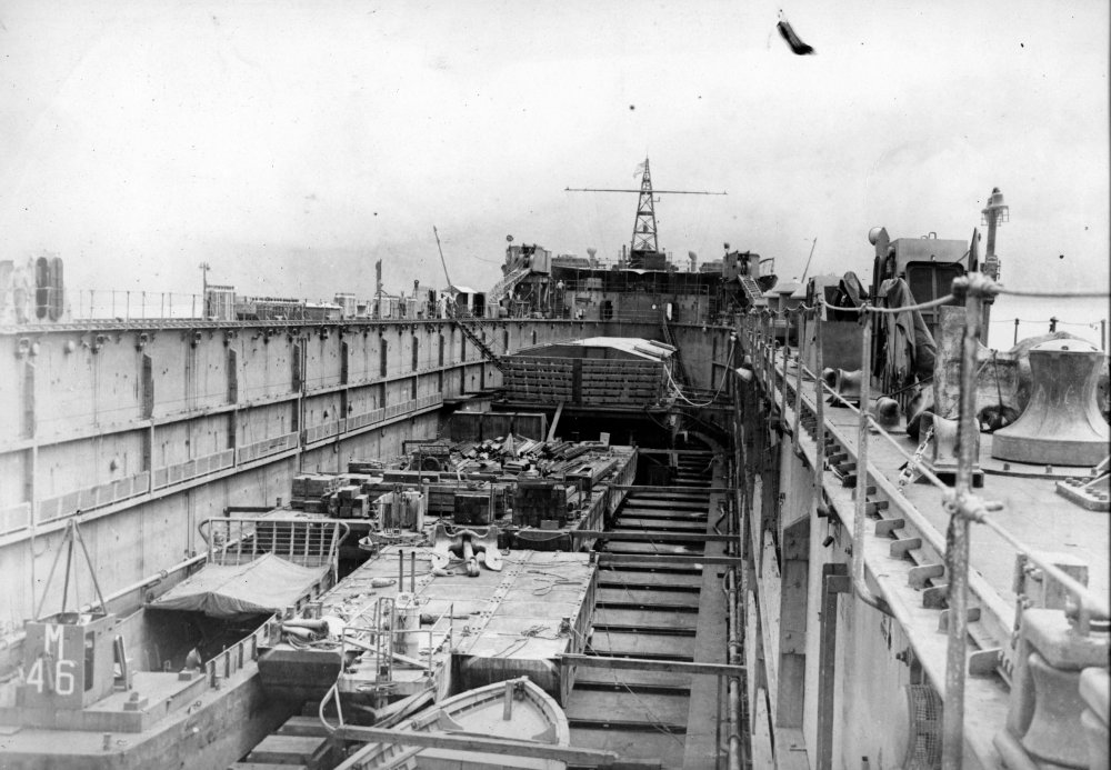 140k | USS ARD-30 with small craft and barges in her dock, date unknown, probably in the Portland, OR. area. | COL. Jack Dyer USMCR-Ret., for his father LCDR Charles J. Dyer, CO USS ARD-30 | |