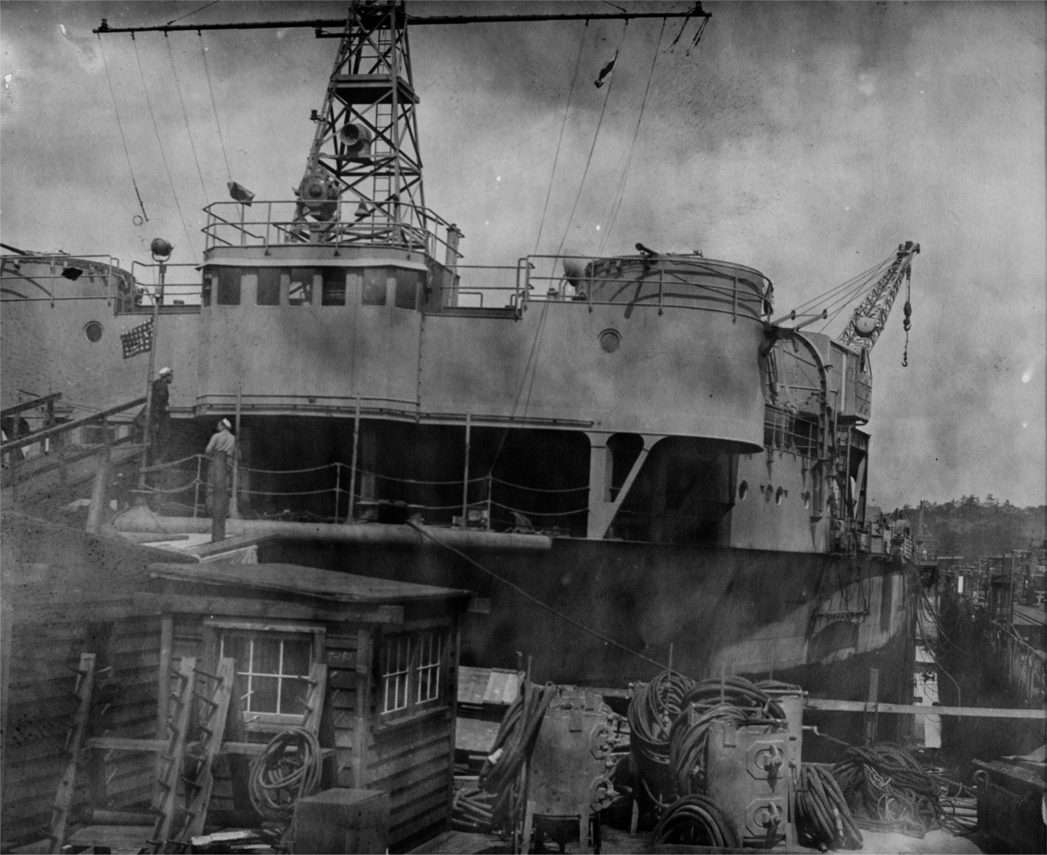 95k | USS ARD-30 looking aft, date unknown, probably in the Portland, OR. area. | COL. Jack Dyer USMCR-Ret., for his father LCDR Charles J. Dyer, CO USS ARD-30 | |