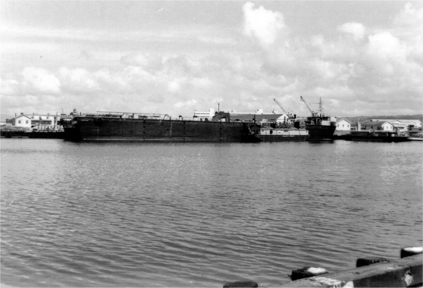 15 February 1981. Note the various submarines at the pier and in the drydock, the Large Covered Lighter