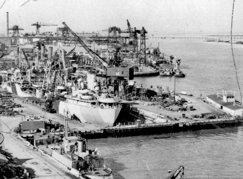 60k | Chilean naval drydocks, Ingeniero Mery (131) (ex-ARD-25) (nearest to camara) and Mutilla (ex-ARD-32) moored in their berths at a Chilean naval station, date and location unknown. | Tommy Trampp | |