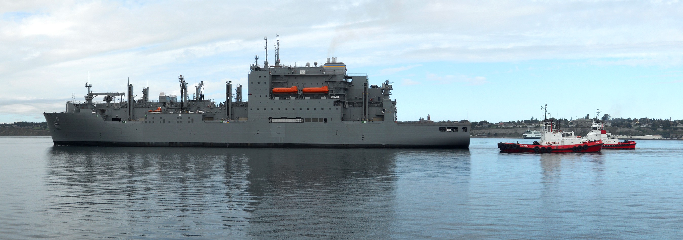 195k | USNS Matthew Perry (T-AKE-9) pays a visit to Naval Magazine Indian Island, WA. circa summer 2010. Note the Crowley Maritime [true tractor] tugs the CMS Protector and CMS Response. | Ron Reeves | |