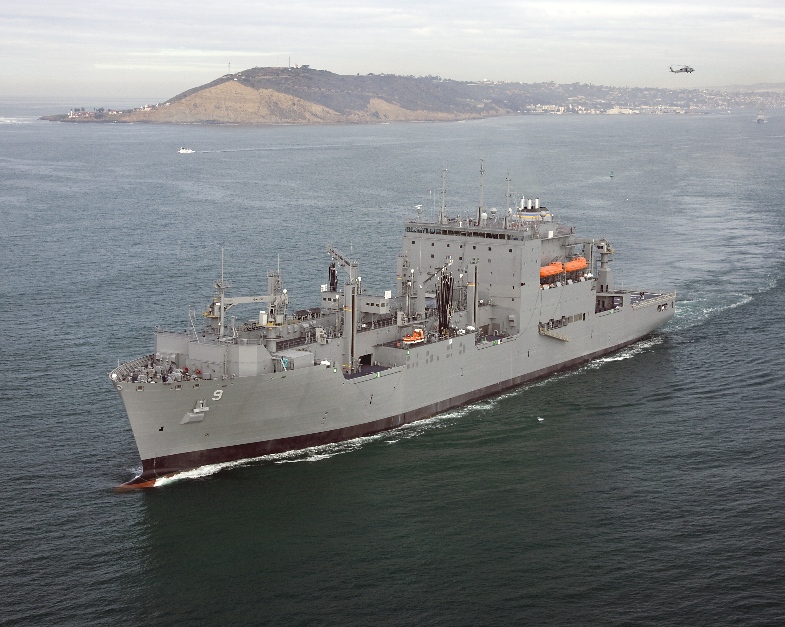 2641k | USNS Matthew Perry (T-AKE-9) underway as she exits San Diego Bay, date unknown. US Navy photo |