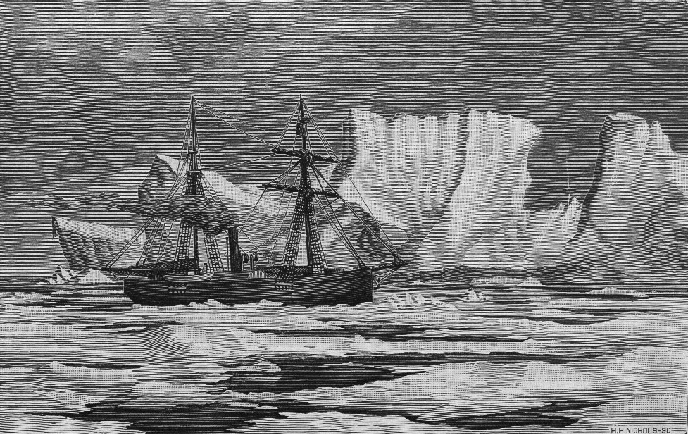 291k | An engraving of Polaris entitled "Working through Ice" by the artist Henry Hobart Nichols Sr. (1816–1886), circa 1876.