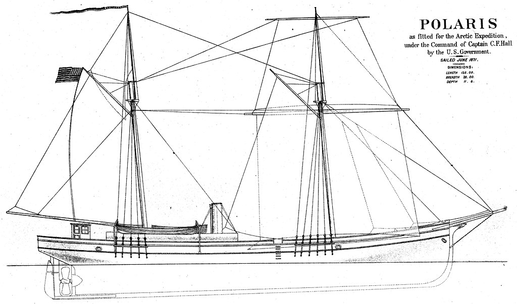 Polaris in 1871. Polaris penetrated farther north than any other vessel up to that time.