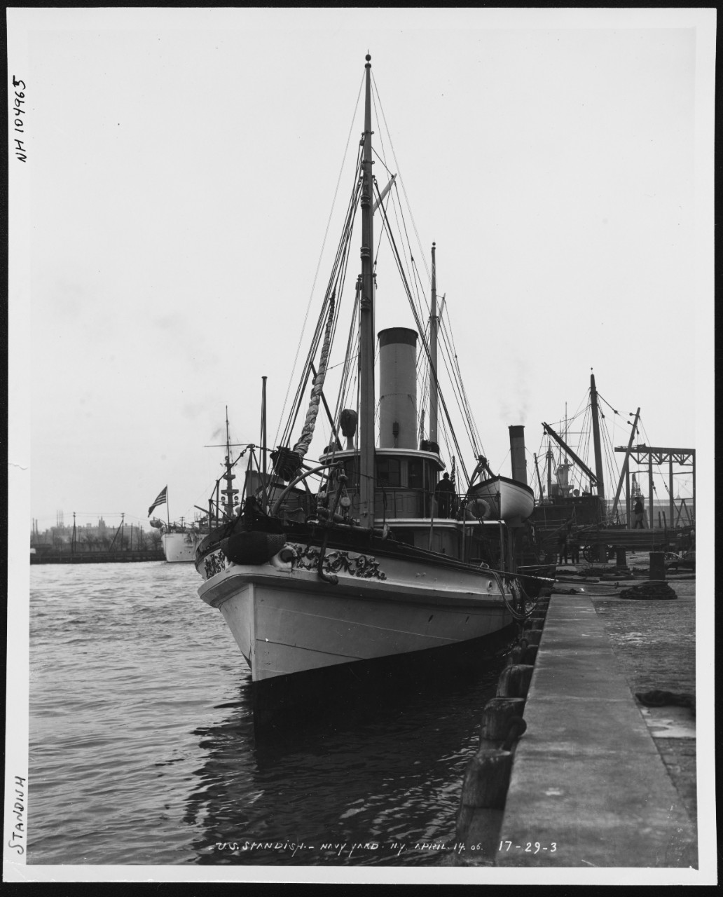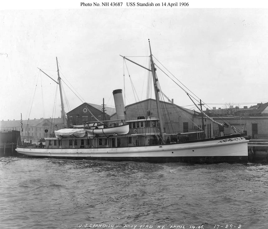 218k | USS Standish (1865-1921) at the New York Navy Yard, 14 April 1906. U.S. Naval History and Heritage Command Photograph. Photo # NH 104965 | Robert Hurst | |