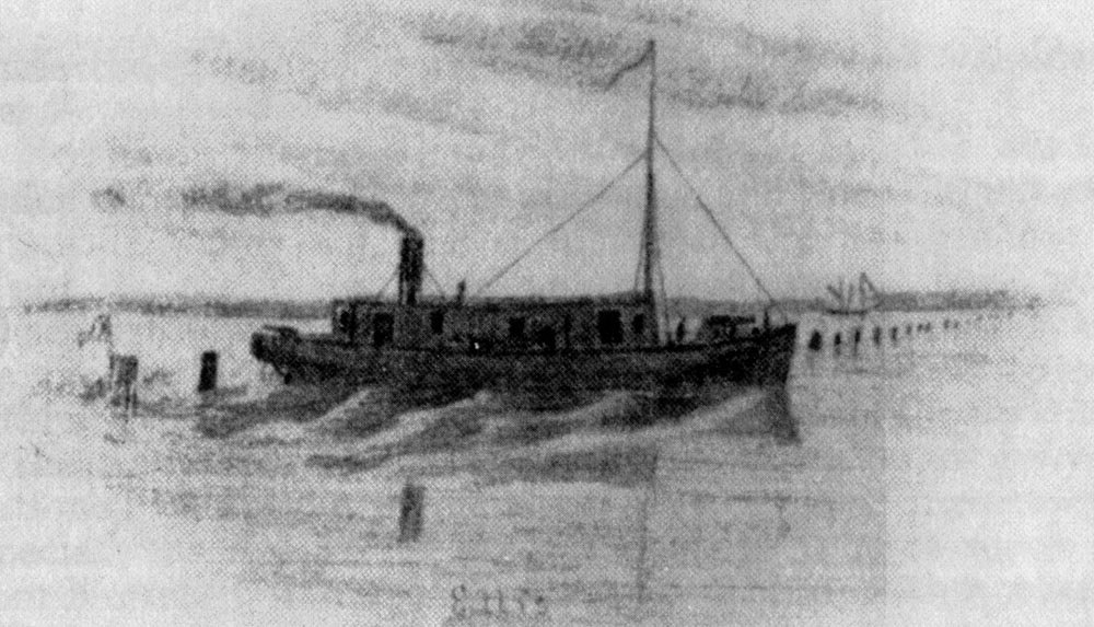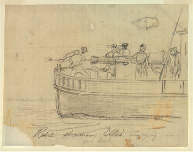 Ellis 130k Copy of a pencil drawing of the captured Confederate gunboat CSS Ellis from a diary that was published in 1911 as the book "Long Roll", by Charles F. Johnson, 1843-1896. Robert Hurst