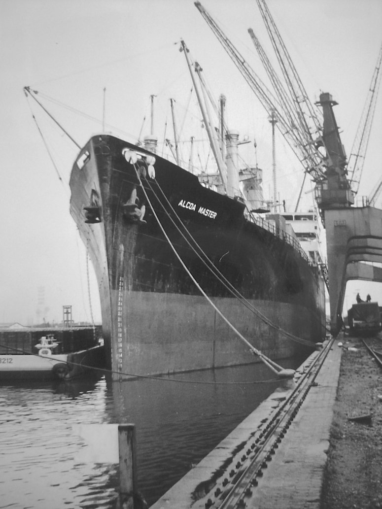 Ex-USS Suffolk (AKA-69) in Merchant service as the Alcoa Steamship Co.'s SS Alcoa Master moored pierside, Bremerhaven, Germany, July 1967. |