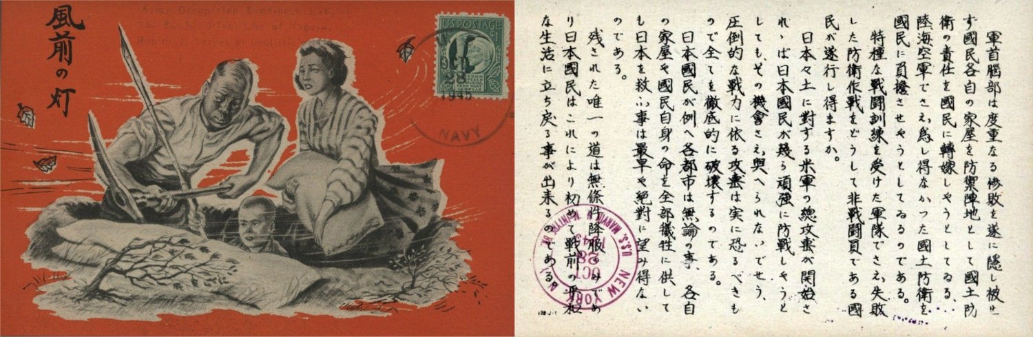 201k | Propaganda Leaflet 139-j-1 produced by American forces during war and prior the occupation of Japan. It is post marked