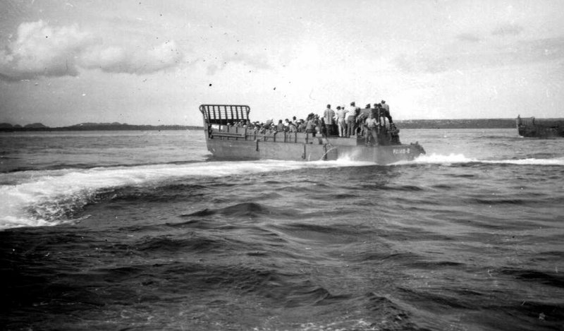67k | One of USS Audubon (APA-149)'s LCMs heads towards Guiuan, Samar, 22 September 1945. Photo courtesy of the USS Audubon crew files. | Robert Hurst | |