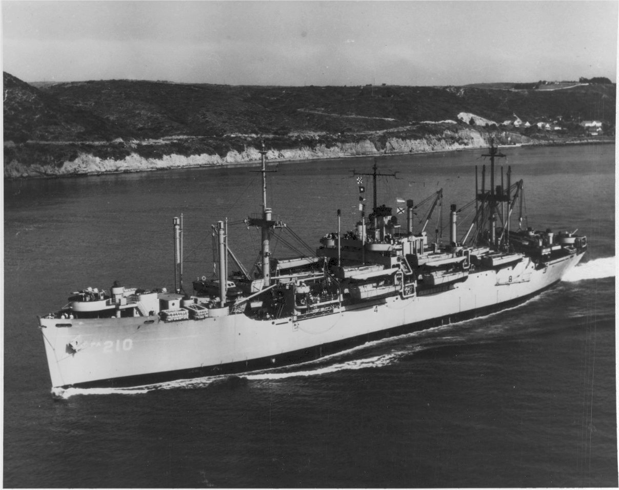 21k | USS Telfair (APA-210) moored inboard of USS Alstede (AF-48), at Norfolk, VA. in October 1964. | Photo by Jim McCoy | |