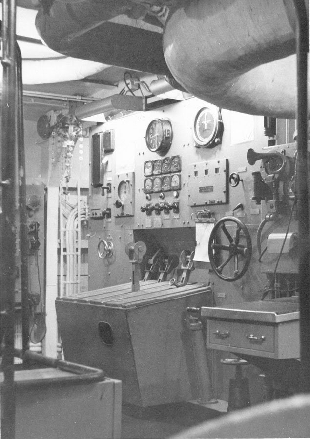 109k | Good detail photo of USS Ray K. Edwards (APD-96), engine room control panel, circa 1946. | Photo by S. D. Phillips |