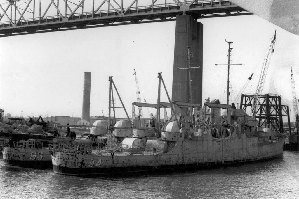 128k | USS Ray K. Edwards (APD-96) and USS John Q. Roberts (APD-94) laid up in reserve at an