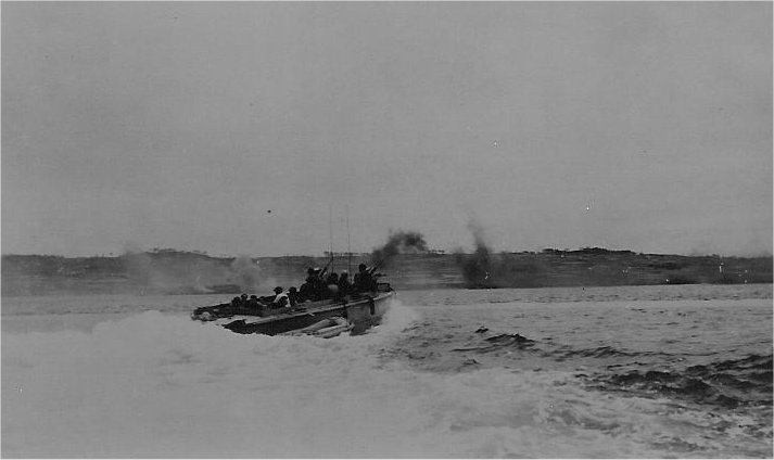 35k | USS Kline (APD-120)'s Underwater Demolition Team in action off Okinawa, 31 March 1945. | Submitted by Ronald Lambe for William A. King, SoM2/c USS Kline | |