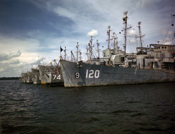 177k | U.S. Navy high-speed transports "mothballed" at Green Cove Springs, Florida, between 1947 and 1966. The ship nearest to the camera is USS Kline