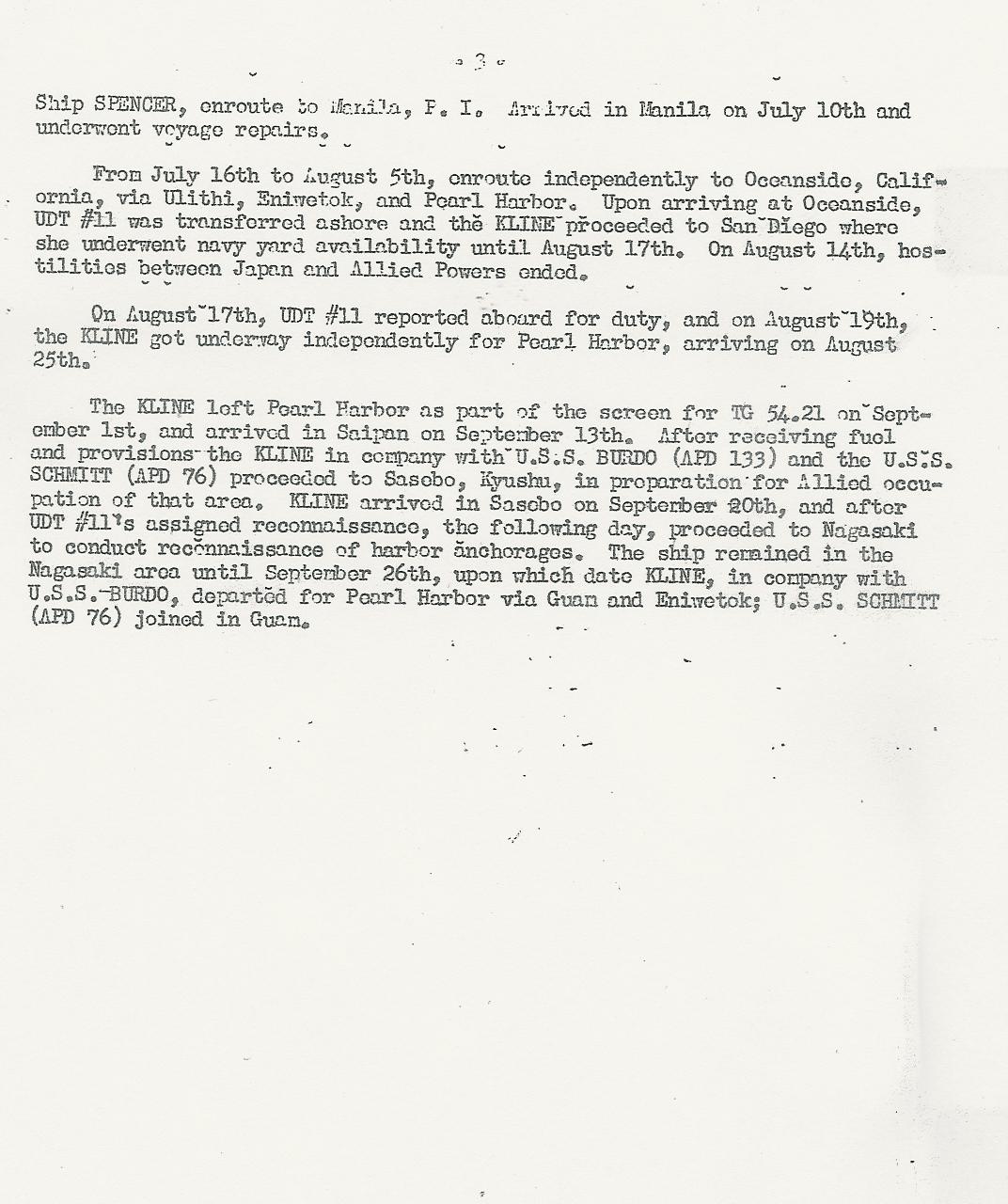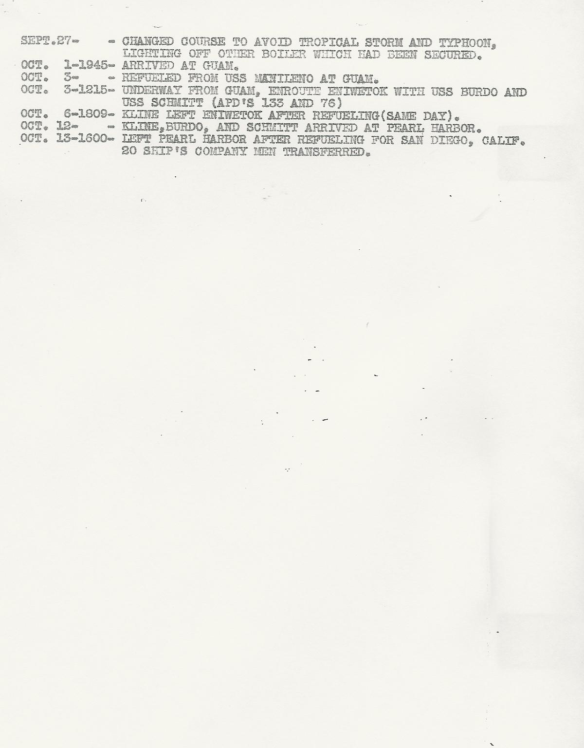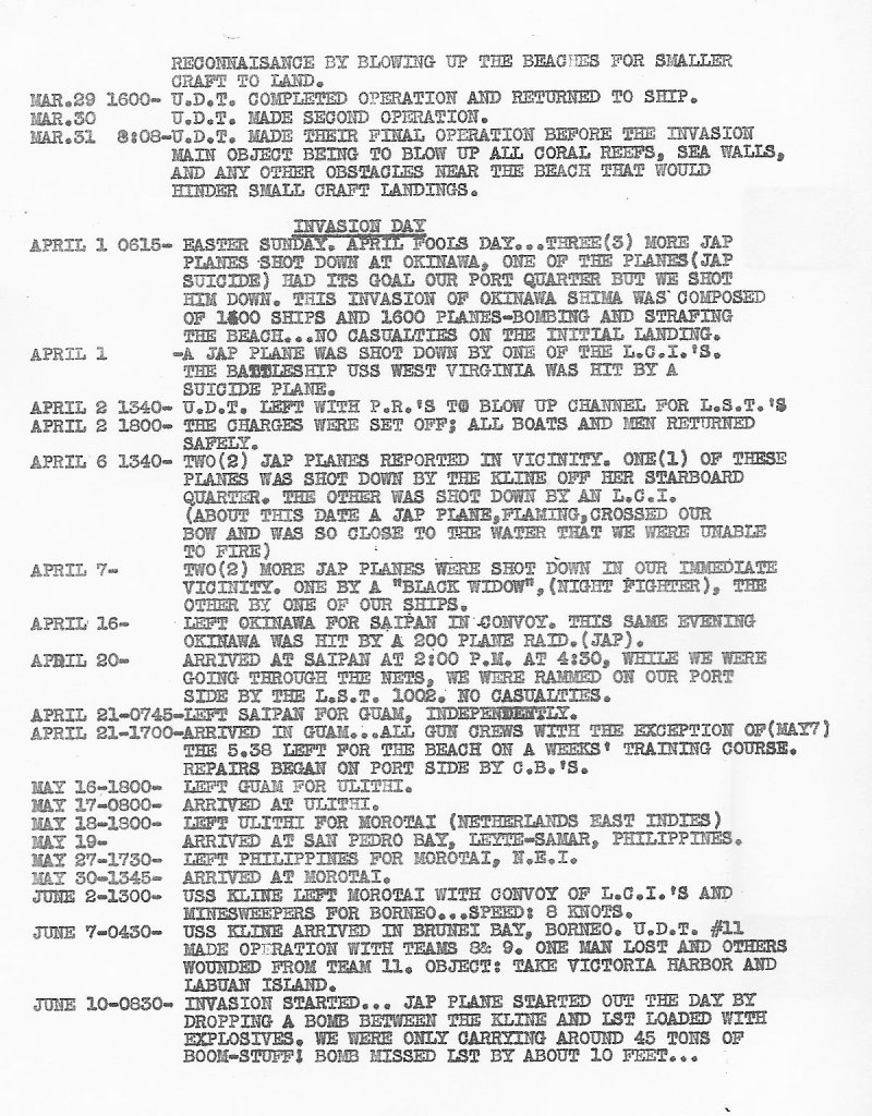 USS Kline Smooth Log 1944-45