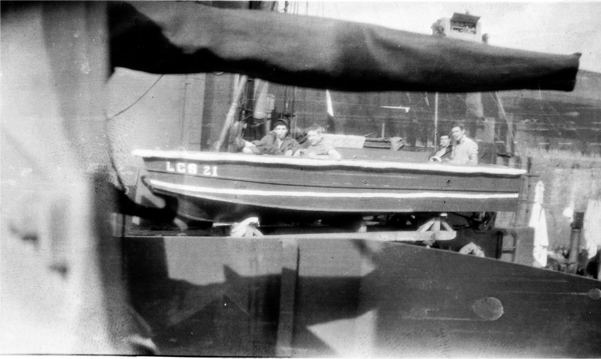 "LCS is for landing craft support. It was commissioned in October, 1944. They sailed to San Diego and then left the States on January 12, 1945. "When we arrived in Pearl, we could still see all the planes and ships that had been bombed. They had not the time to clean all of this up so they just left it." Next stop was Guadalcanal on Feb,20. On March 23, they left as part of the fleet headed to the invasion of Okinawa. April 1, Okinawa, "At 0736 a plane came out of the clouds and headed for a Destroyer. It looked like a bird with an egg on it, but we didn't know. We knocked the plane down, and it was one of our own planes. It made us feel bad but we didn't have time to worry about the pilot." About a week later, They we got a letter saying that the plane we shot down five days ago was a Jap, too.". No punishment nor commendation. On Friday, the 13th, they were sent in a flotilla of 13 ships to area Picket 13, 50 miles North of the island. Only 6 of the ships arrived at Picket 13. "All the(Jap)planes that attacked Okinawa passed this point." "Then, all of a sudden, we saw planes everywhere, coming right for us. There were 75 Jap suicide planes. We radioed for more air protection. They got there, but it was almost too late." He describes the battle and ships being hit. "It was about 1600---- and all we had left aboard the ship was one round of ammunition." "All that was left was LCS23 and my ship, LCS21 and it looked hopeless. Then our planes came in on the Japs and they really had a dog fight" They started bringing aboard sailors from the water and from sinking ships. During the rescue, LCS21passed over another sunk LCS which exploded directly under them. This inflicted split seams and other damage but they continued to bring survivors aboard. "We had 239 men aboard plus our crew of 70 men on a 165 foot vessel." "There's grease and blood everywhere you went. The Jap planes were still coming." "We knocked down 4 planes that day." The LCS21 ran at top speed for the hospital at Okinawa. Only 6 the wounded died. The news carried the story of their arrival with a sharp list and bow up from the overload that it looked like the ship was badly damaged. Their action earned them a Unit Citation. "The night of May 24, 1945, LCS121 fired its aft 40mm (gun) and put a hole through our bow and into the dry storage. We had to pump water out of the hole all night and then went in for repairs." "June 1, during this patrol the skipper made a mistake reading the map." Another officer came on duty later and discovered the error when they were about 75 miles from Tokyo and ordered flank speed to get away before they were spotted. From that time on, he comments on the engines running poorly for the rest of the war. On September 16, they went through a typhoon that broke open a leak around the rudder post. Oct. 22, 1945, they lost the first man. He died of sudden appendicitis and was buried at sea. Oct. 25, one of the engine men opened the wrong valve and dumped much of the drinking water overboard. He was put in the brig for 5 days and fed bread and water. LCS21 performed mine sweeping duty during all of November."