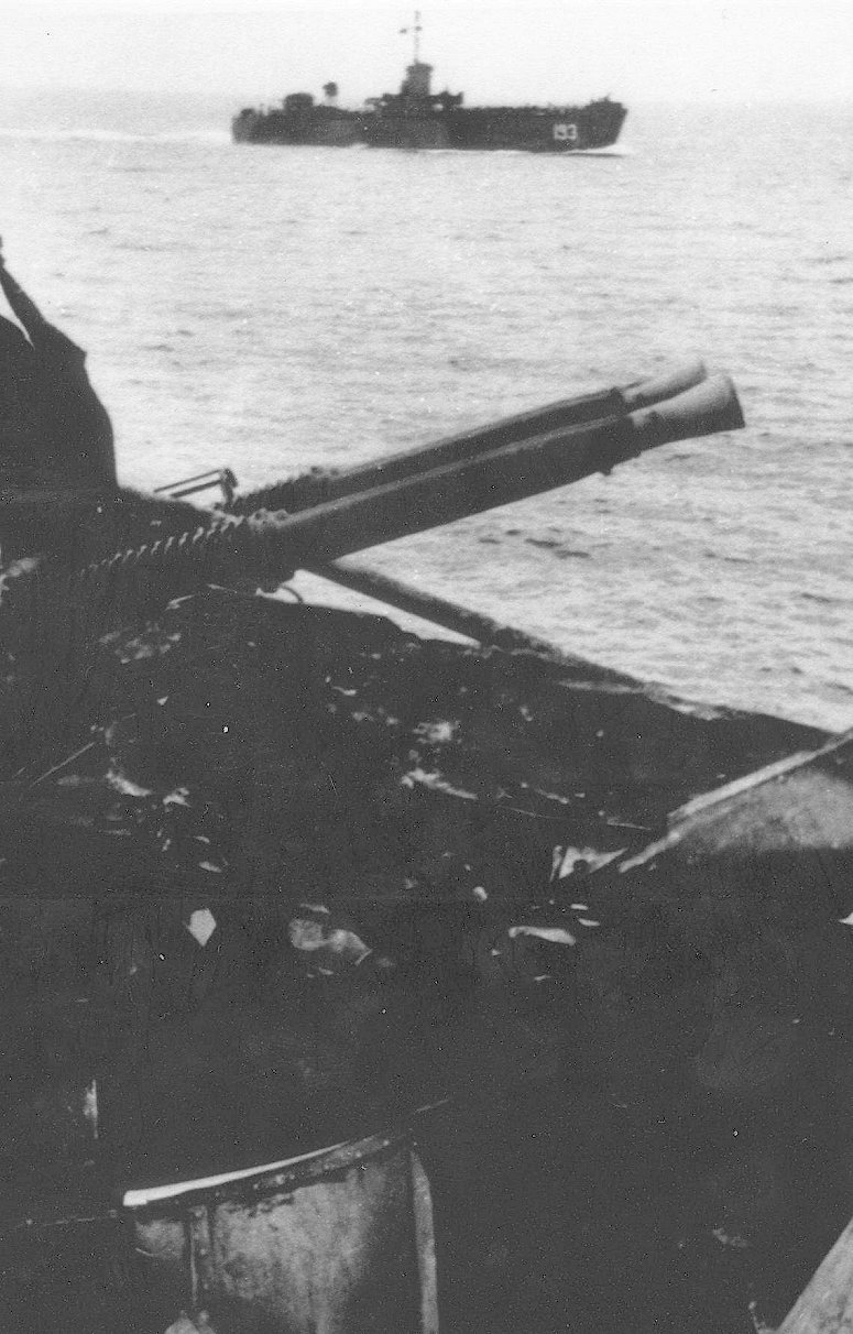 177k | USS LSM(R)-193 protecting USS Hugh W. Hadley DD-774 at Radar Picket Station 15 off Okinawa on 11 May 1945. | Hugh Hudson RM2/c, USS LSM-467, USS LSM-49, Courtesy LTjg. Doug G. Aitken, USS Hadley (DD-774) | |
