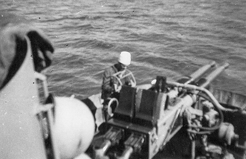 133k | USS LSM(R(-528) aft twin 40mm gun mount. | Donald Tourville USS LSMR-528 | |