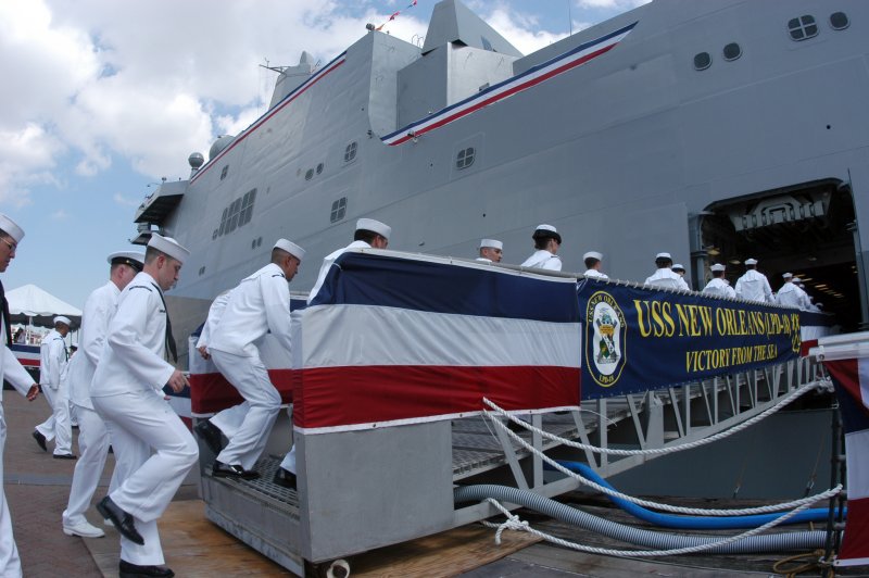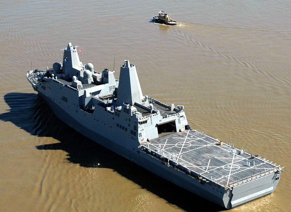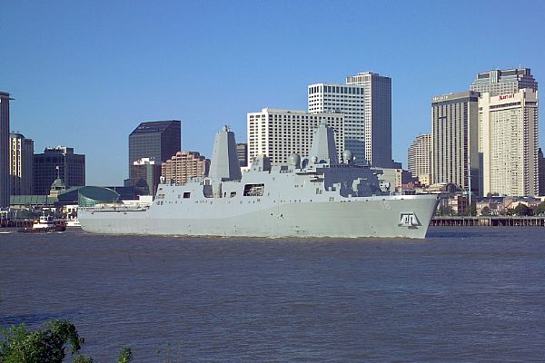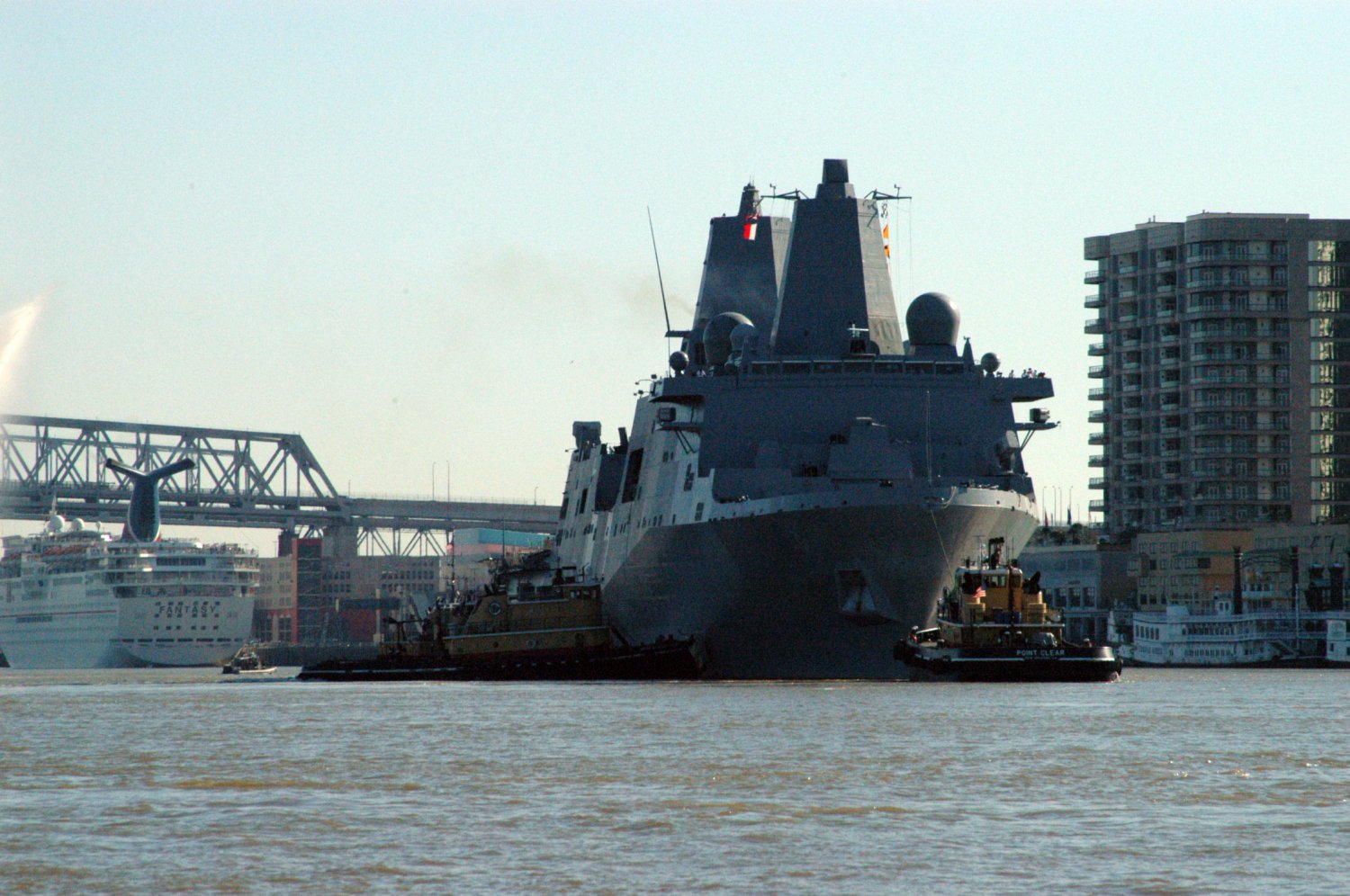 253k | New Orleans (LPD-18) transits the Mississippi River toward her namesake city. The ship is scheduled to be commissioned in a