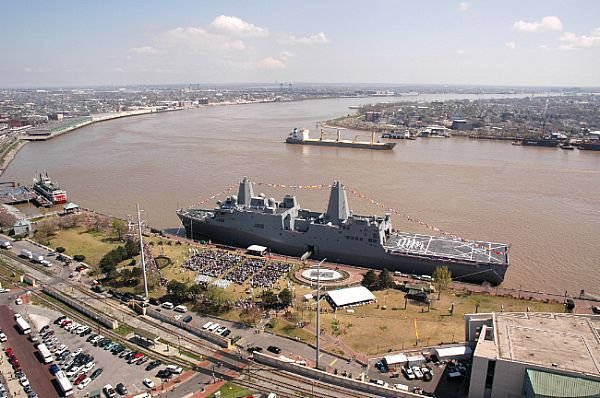 116k | The soon to be USS New Orleans (LPH-18) passing the New Orleans Central Business District enroute to her commissioning site in the city, 5 May 2007. U.S. Navy photo |