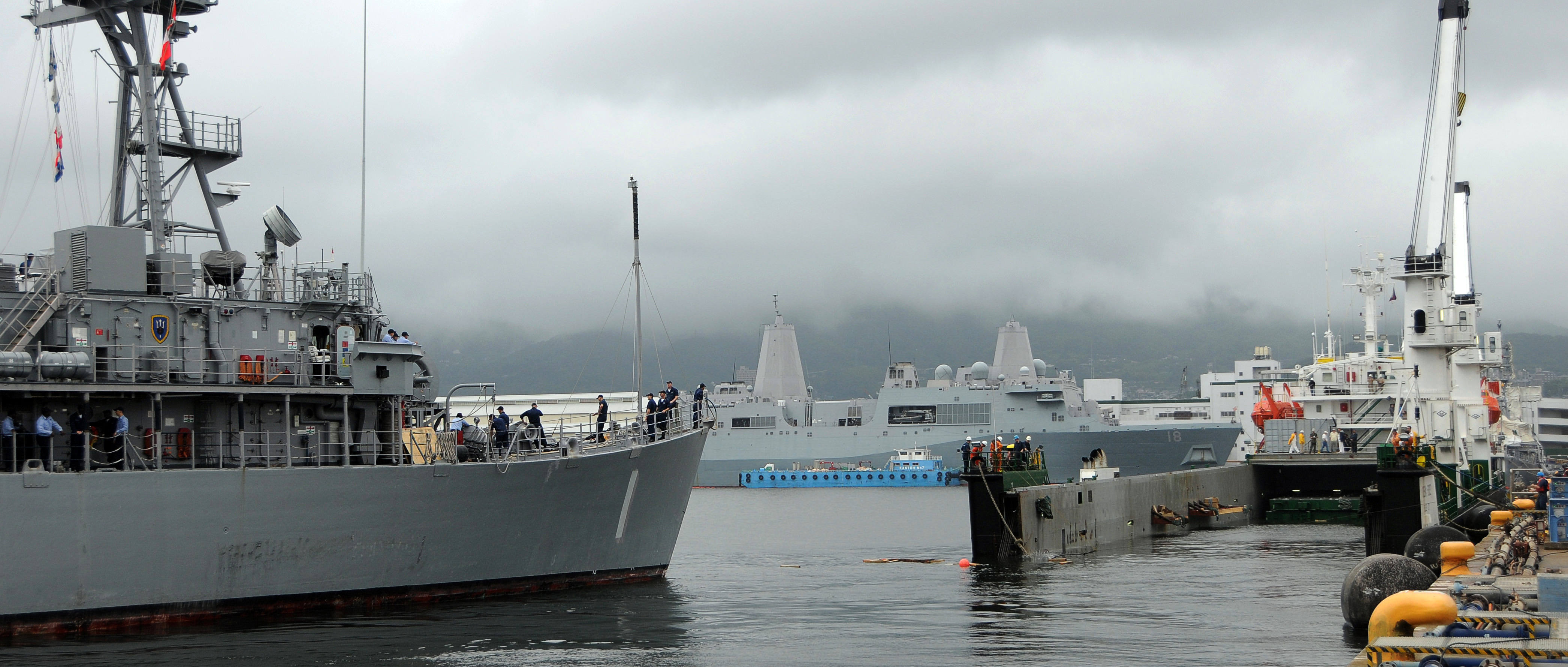 Island Amphibious Ready Group with embarked Marines assigned to the 11th Marine Expeditionary Unit (11th MEU), deployed to the U.S. 3rd Fleet Area of operations. US Navy photo # 120613-N-PB383-375 PEARL HARBOR (June 13, 2012) by MC2 Dominique Pineiro. |