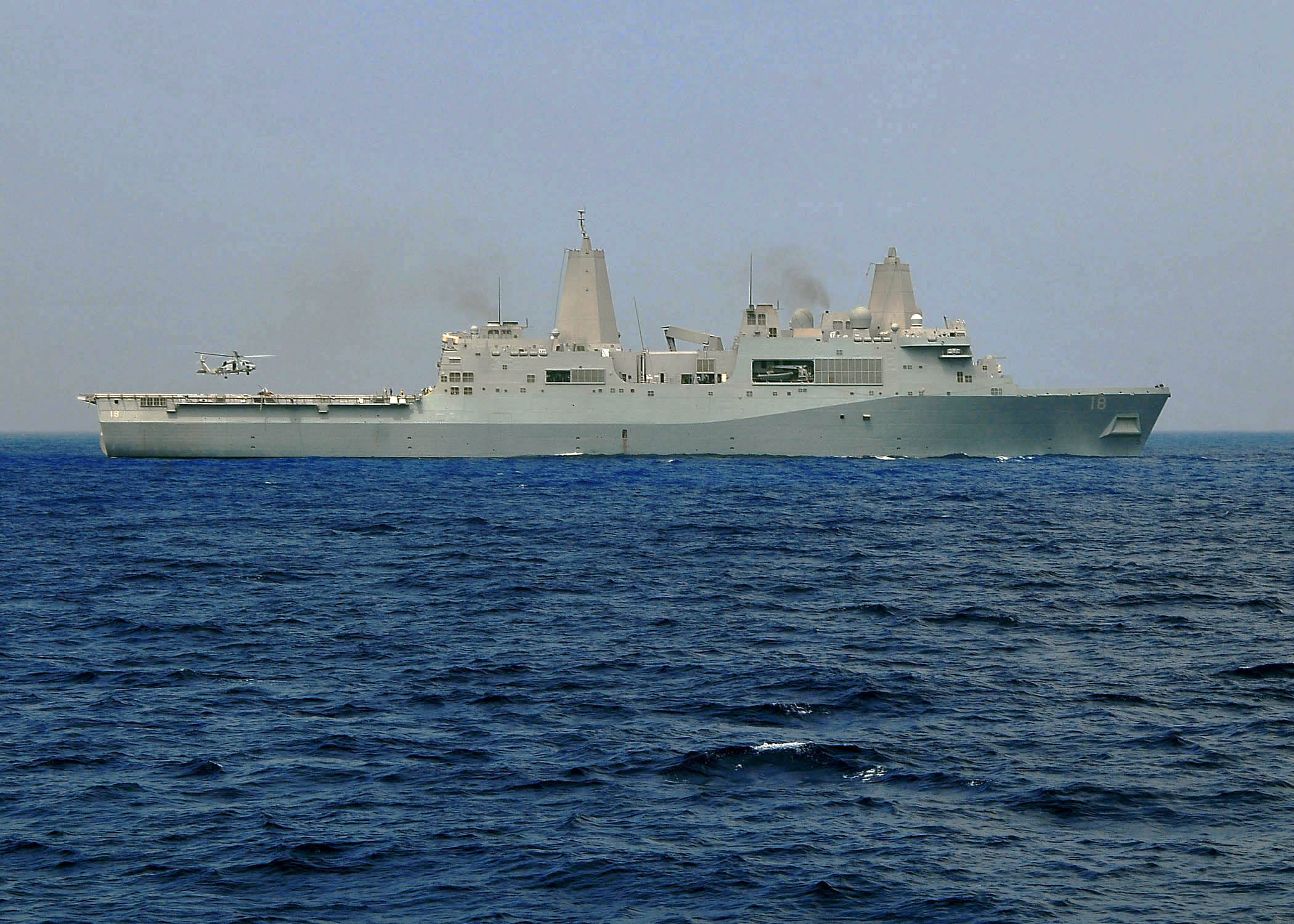 454k | USS New Orleans (LPD 18) conducts flight operations. New Orleans is deployed as part of the Boxer Amphibious Ready Group supporting maritime security operations in the U.S. 5th Fleet area of responsibility. US Navy photo # 090528-N-4774B-132 GULF OF ADEN (May 28, 2009) by MC2 Daniel Barker. |