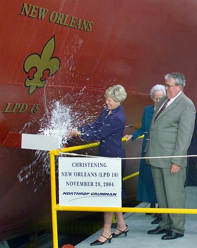 35k | Christening of New Orleans (LPD-18), 20 November 2004, by Carolyn Shelton, wife of General Henry H. Shelton, former Chairman, Joint