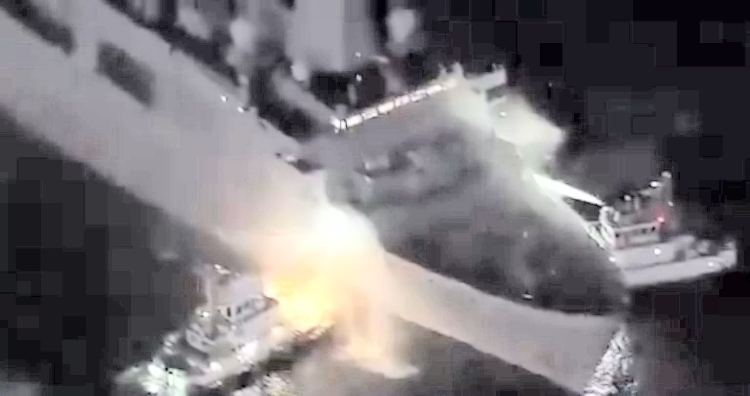 83k | USS New Orleans (LPD-18) on fire at White Beach Naval Facility, Okinawa, 20 August 2025. New Orleans departed White Beach,